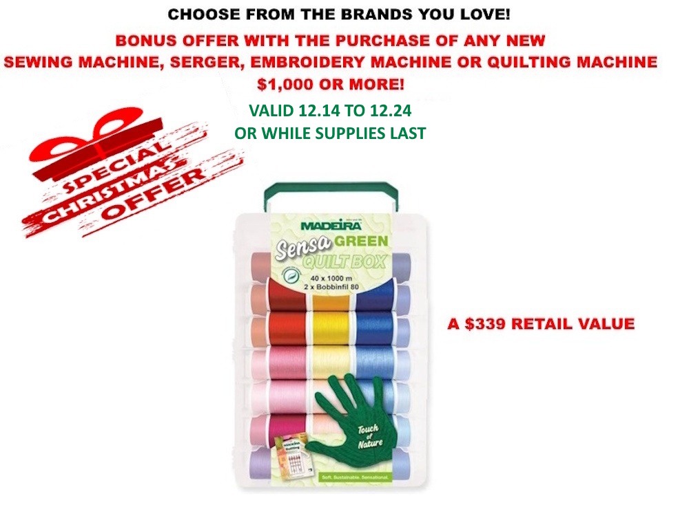Ken's Sewing has several great specials ongoing by placing an order on our website at www.KensSewingCenter.com. We encourage you to sign up to get our weekly specials at http://www.kenssewingcenter.com/newsletters.php
