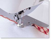 Genuine Brother Accessory. Attaches bias tape with widths less than 7 mm (1/4 of an inch) using straight, zig zag or decorative stitches. The design of this foot will place your ready-made bias tape or will fold and place precut bias strips correctly for easy sewing to the edge of a fabric