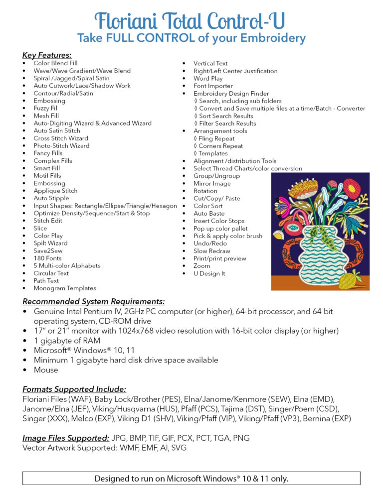 Floriani Total Control "U" Embroidery Software
