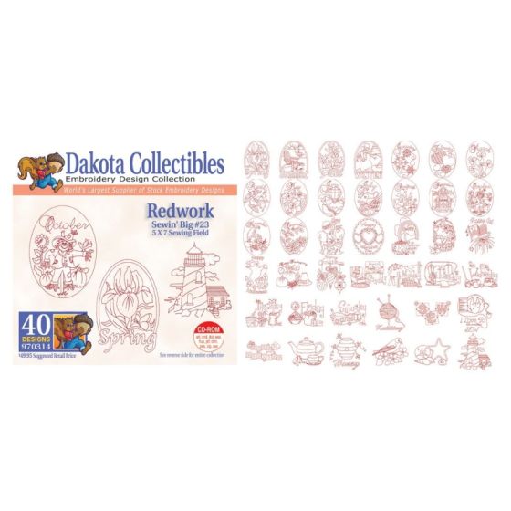 Adding the Dakota Collectibles Redwork Embroidery Designs to your collection is affordable with Ken's low prices. With our fast and free shipping you'll recieve the Dakota Collectibles Redwork Embroidery Designs in no time. This Dakota Collectibles Redwork Embroidery Designs contains forty vintage 5x7 redwork patterns including classic images and twelve images for the months of the year. We make getting your Dakota Collectibles Redwork Embroidery Designs a breeze with our simple ordering process and excellent customer service.