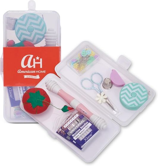 - Portable Small Sewing Kit from American Home: Sturdy, compact case contains 11 high quality essential sewing tools, sewing accessories and supplies for the next sewing, quilting, crafting and embroidery project for beginners or experienced sewists