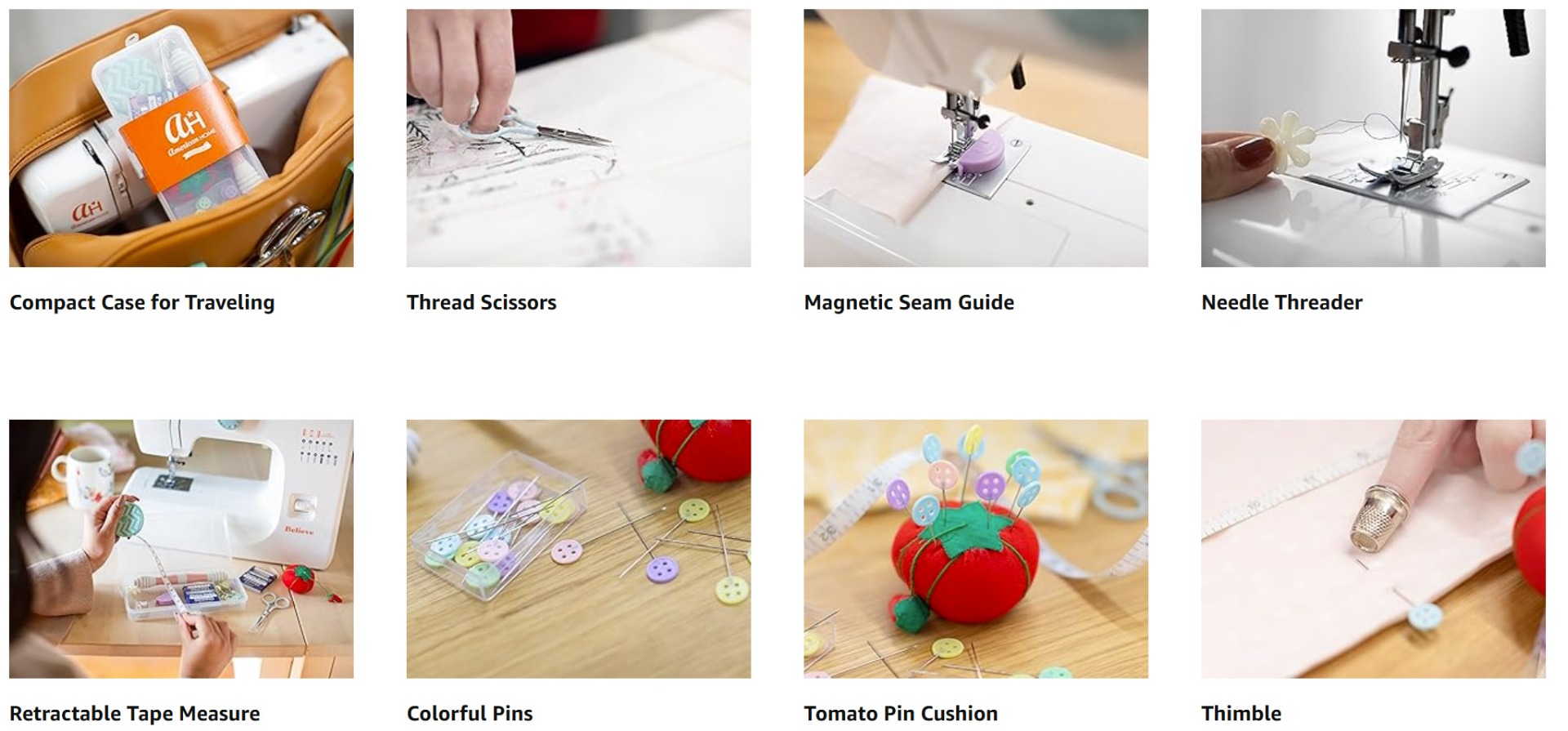 - Includes: #80, #75 and #90 machine needle multi-pack plus retractable tape measure, magnetic seam guide, 3.5-in. embroidery scissors, mini tomato pin cushion, dual seam ripper / thread remover, 30 sewing pins with colored heads, thimble and flower needle threader