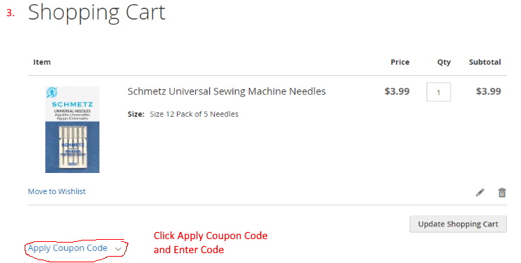 Some customers may experience issues with using a coupon within your shopping cart Please see the diagram below on how to enter a coupon code and apply it to your order before checkout.