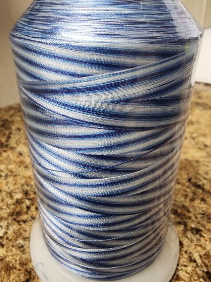 This Exquisite 5000m Blue Variegated Thread is easy to order and shipped to you quickly. Ken's 30 day guarantee lets you make sure the Exquisite 5000m Blue Variegated Thread is made of polyester and contains the colors baby blue, slate blue, blue suede, and night horizon. Take advantage fo our low prices and order the Exquisite 5000m Blue Variegated Thread today.