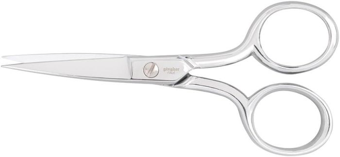 Gingher's classic embroidery scissor - versatile enough for all sewing and needle arts. Sharp points reach and cut multiple threads and a strong frame is ideal for cutting one layer of fabric or lightweight yarn. Double-plated chrome over nickel. Includes fitted sheath for storage.