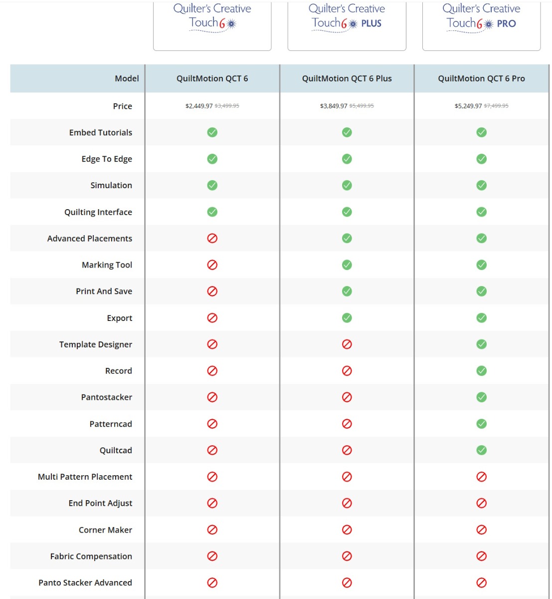 Each version of QCT6 offers powerful, intuitive quilting features—so you can choose the perfect balance of automation, design control, and affordability for your quilting setup.