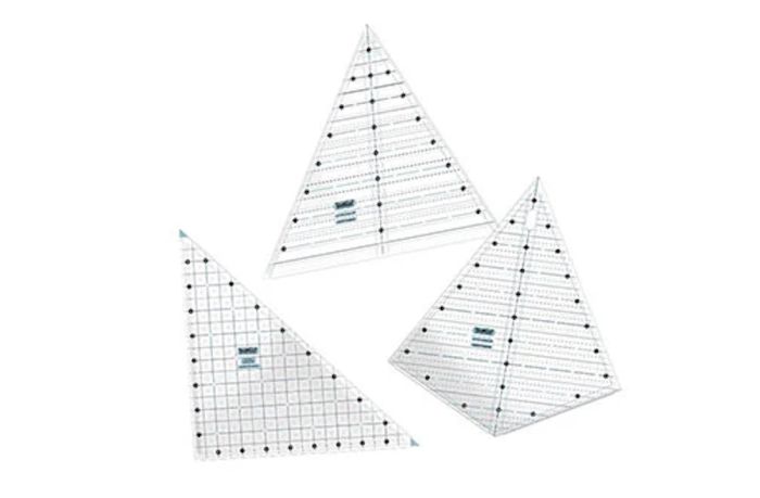 Kite Ruler: This ruler is great for almost any small project and shape. It cuts triangles, diamonds, and patterns with 60 or 90 degree angles.