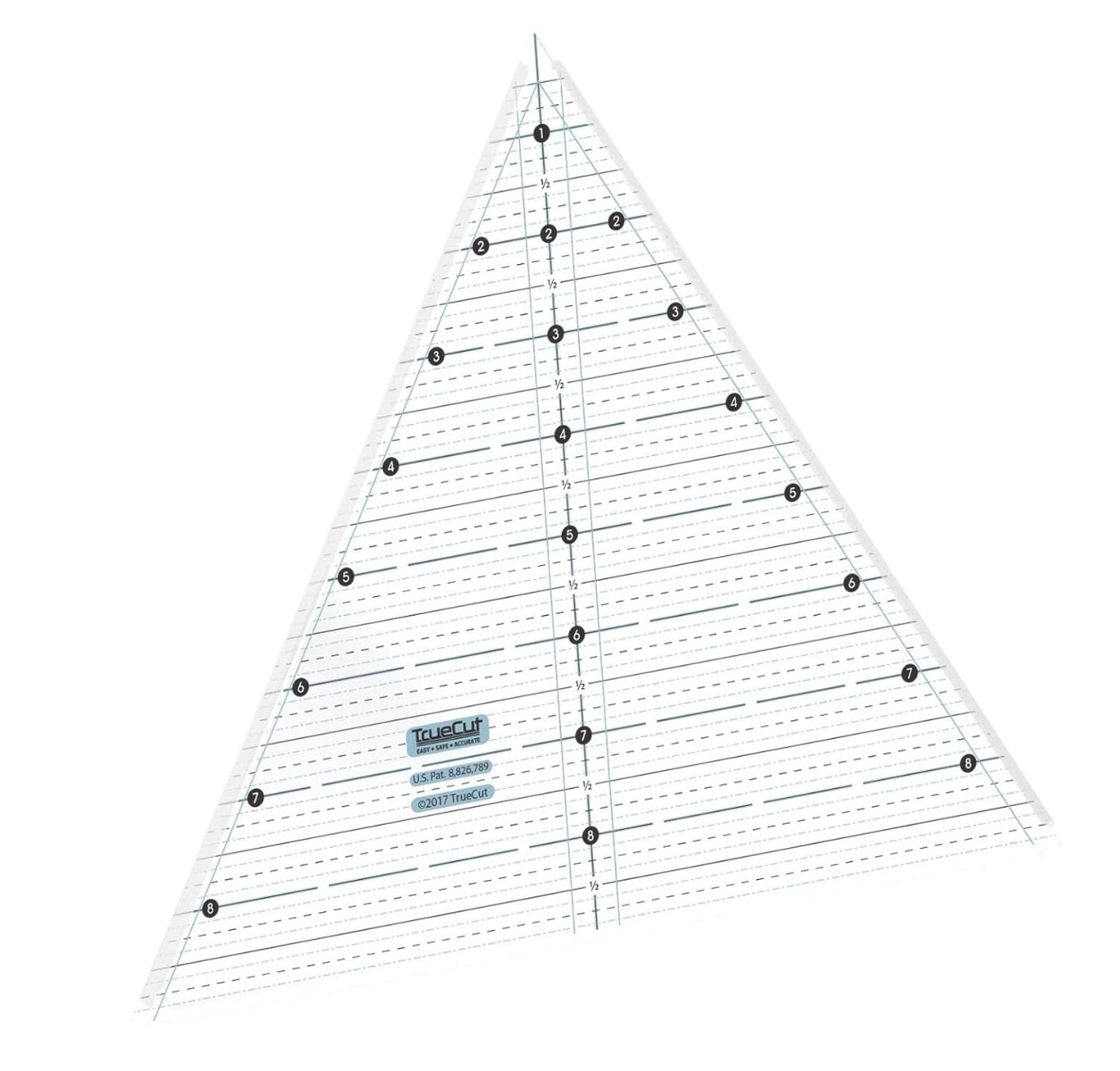 Perfect for small shapes and pieces! The triangle rulers have specific angles to make cutting shapes a breeze. There are currently three different configurations. Each triangle ruler works with the patented TrueCut track and guide system for use with the TrueCut cutters, but can also be used with any other rotary cutter on the market.