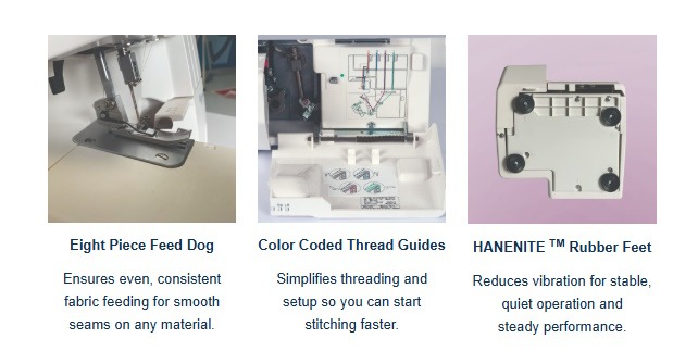The MyLock 654D Sailing Line Serger offers fast, professional-quality results for both beginners and experienced sewists. With 2, 3, or 4-thread overlock stitching options, this versatile machine handles a wide range of fabrics and techniques with ease. Its differential feed system ensures smooth seams, even on stretchy or lightweight materials, while the color-coded threading guide and easy lower looper threading simplify setup. The powerful motor delivers consistent performance, and the sturdy, low-vibration design—complete with anti-slip rubber feet—keeps your work steady and quiet. Whether you’re finishing seams or creating decorative edges, the MyLock 654D is built for reliable, high-speed stitching.