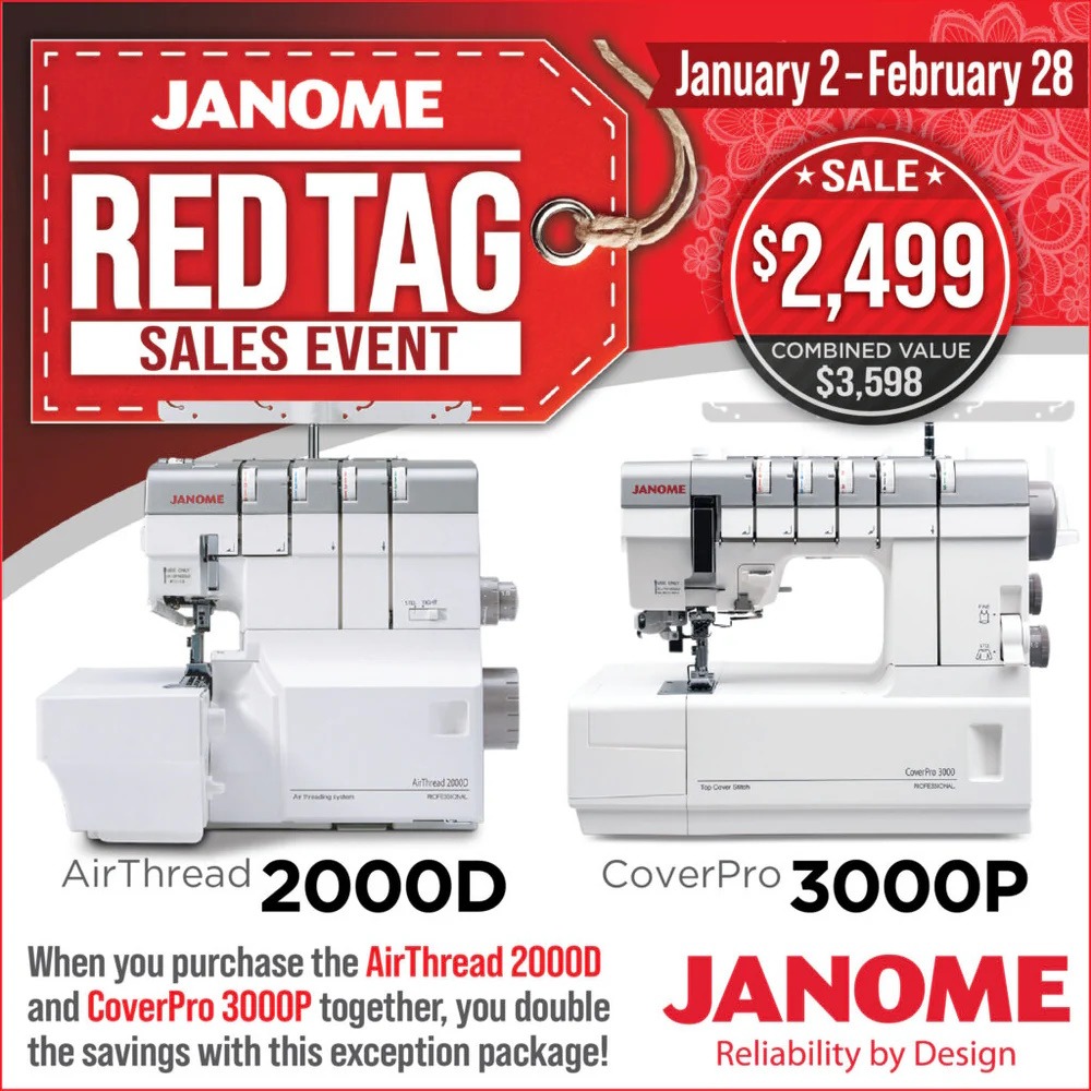 Janome Red Tag Sales Event Air Thread 2000D and CoverPro 3000P Serger Combo Offer