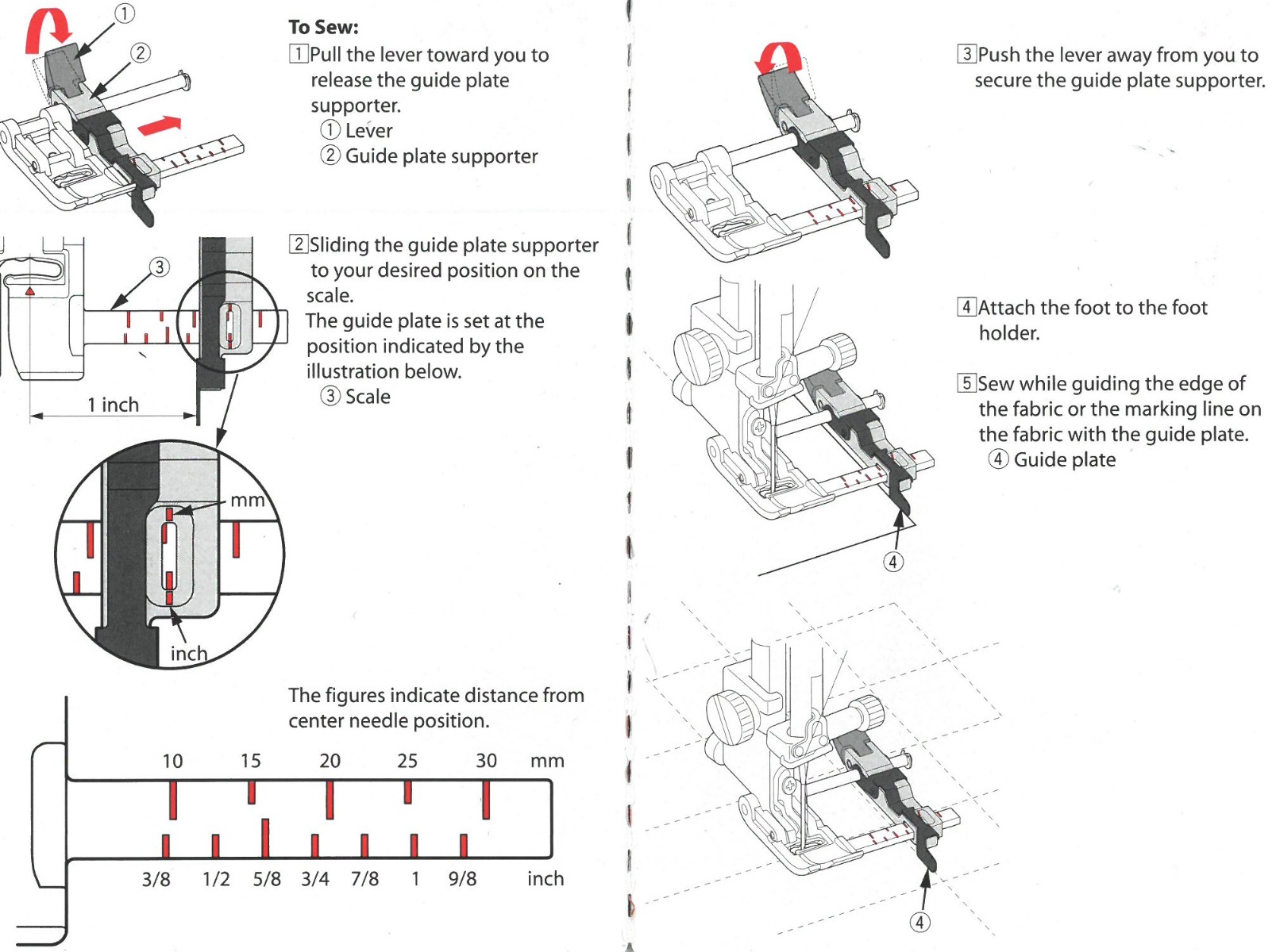 Edge stitching could not get any easier with the Sliding Guide Foot! You can adjust the flange to sit up to a full inch away from the edge of the foot in seconds and create perfectly straight hems every time. The guide can be moved freely and easily by just lifting the lever in the back of the foot, instead of having to mess with an annoying screw. The clear markings make certain you know exactly where you want your foot to go.