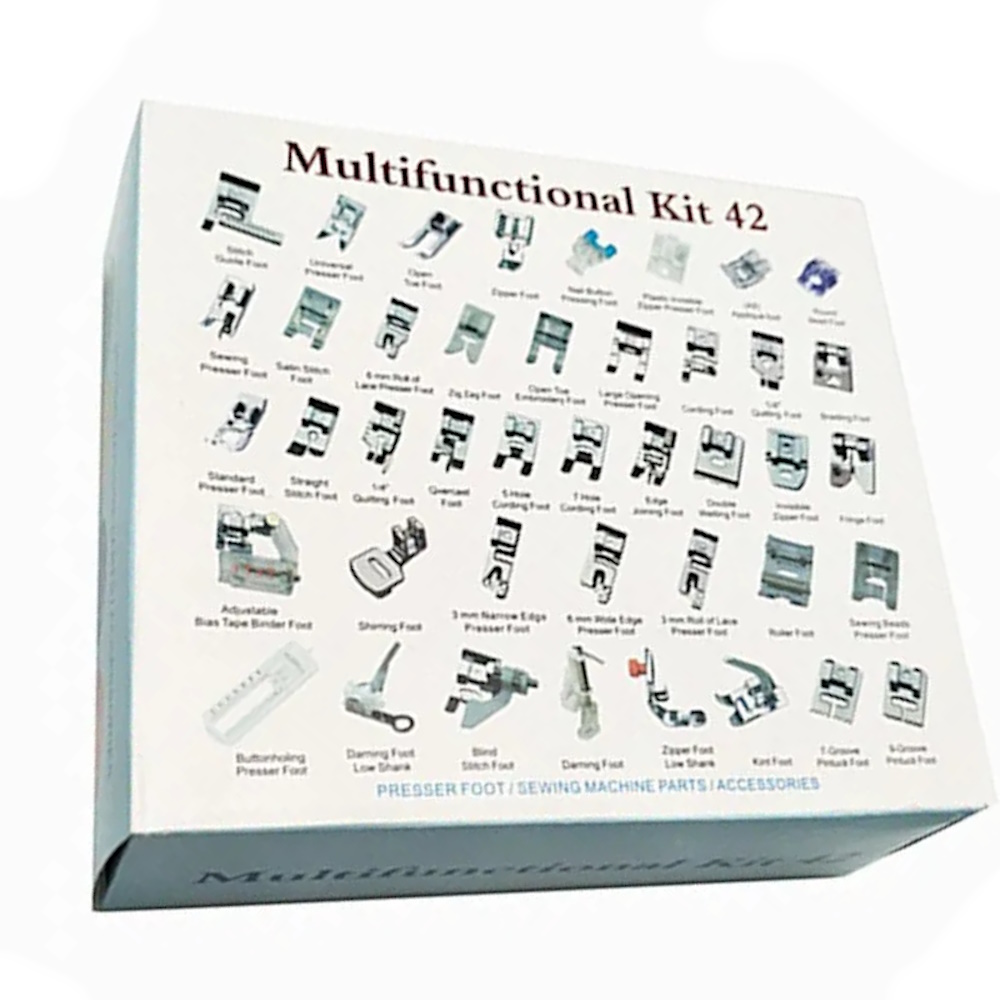 - Included with the Multifunctional 42 Piece Sewing Machine Foot Kit for Many Brands