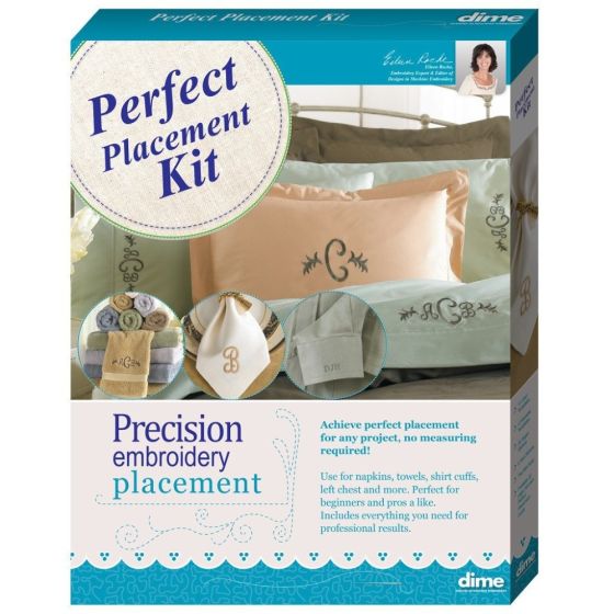 Use the Perfect Placement Kit to achieve perfect placement of designs on almost everything. Embroider perfectly matched sets linens and clothing with speed and precision using the Perfect Placement Kit. The Perfect Placement Kit takes the guess work out of it for you.