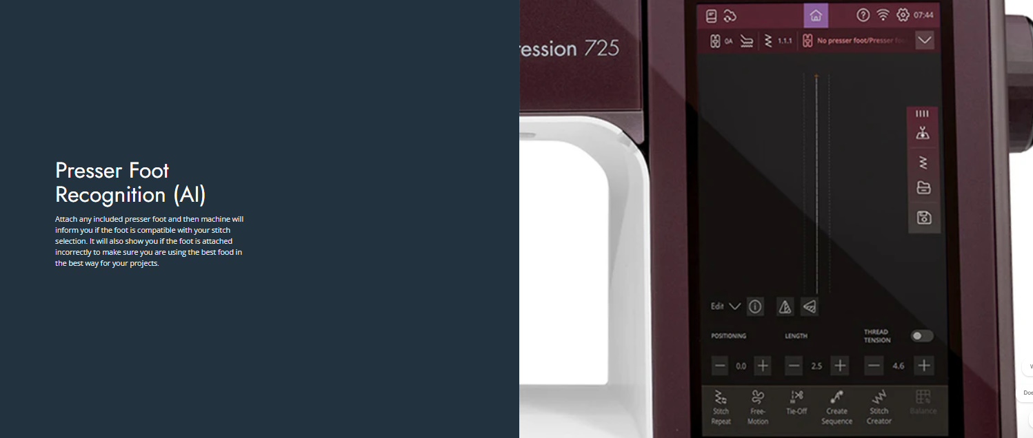 The PFAFF® quilt expression™ 725 is for the enthusiast who wants to take their sewing and quilting to the next level with amazing features, including: