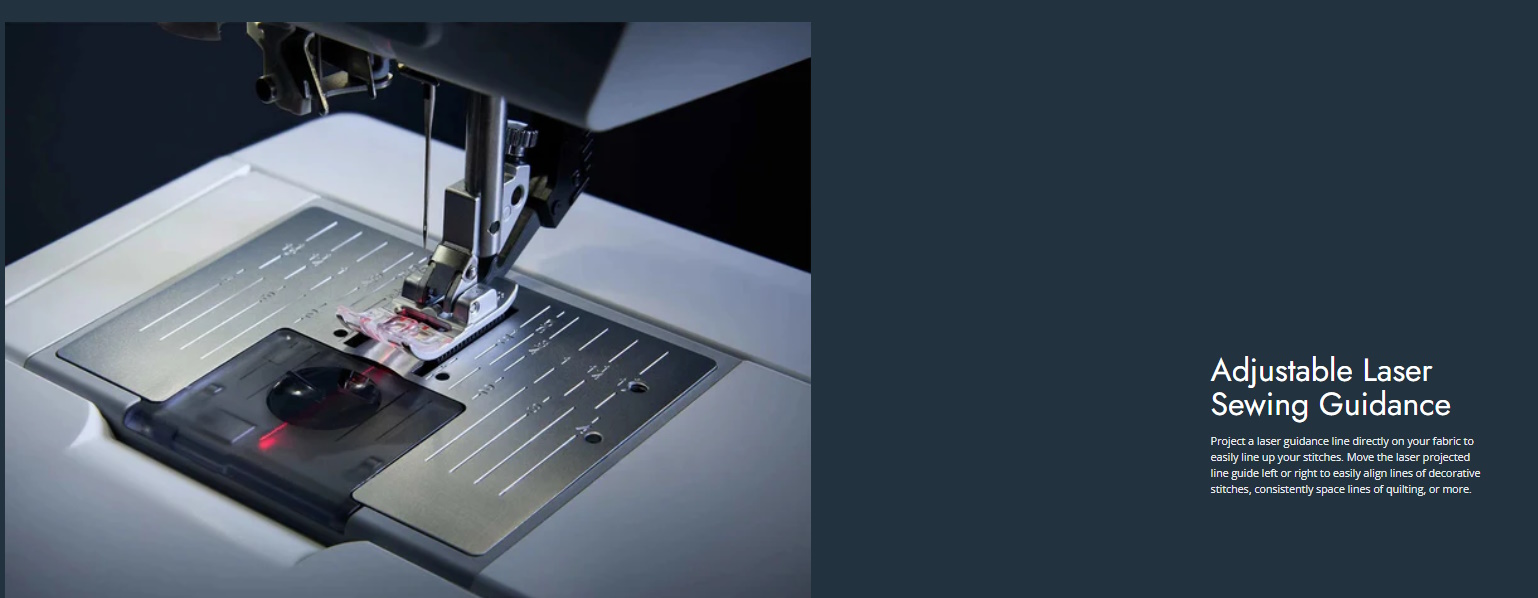 - Adjustable Laser Sewing Guidance: Project a laser line to guide precise stitching and quilting.
