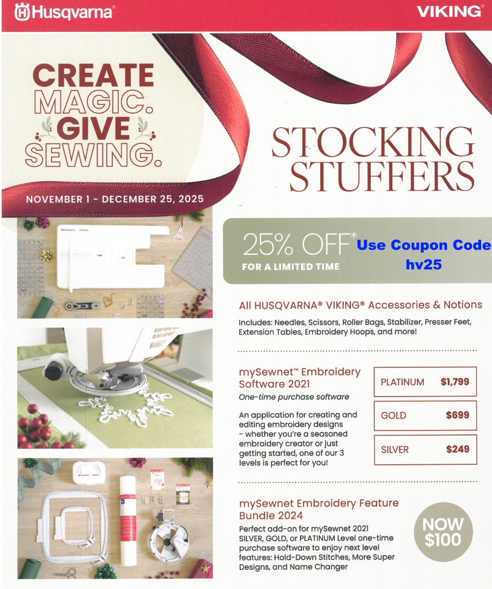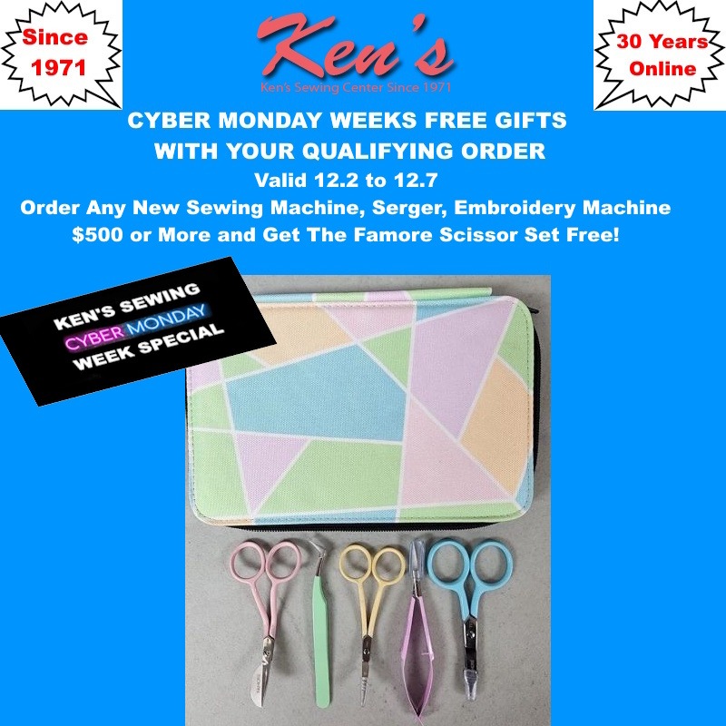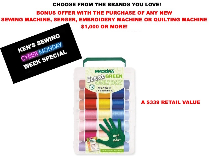Ken's Sewing has several great specials ongoing by placing an order on our website at www.KensSewingCenter.com. We encourage you to sign up to get our weekly specials at http://www.kenssewingcenter.com/newsletters.php