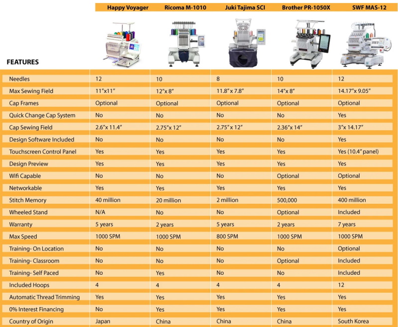 Major features of the SWF MAS 12 Needle Commercial Embroidery Machine